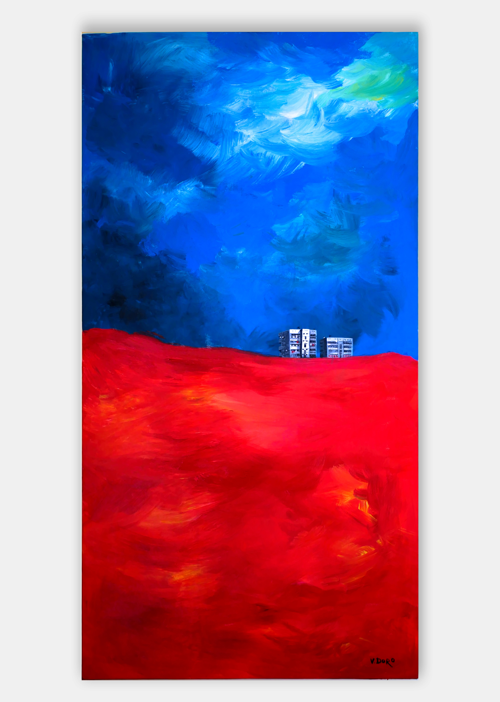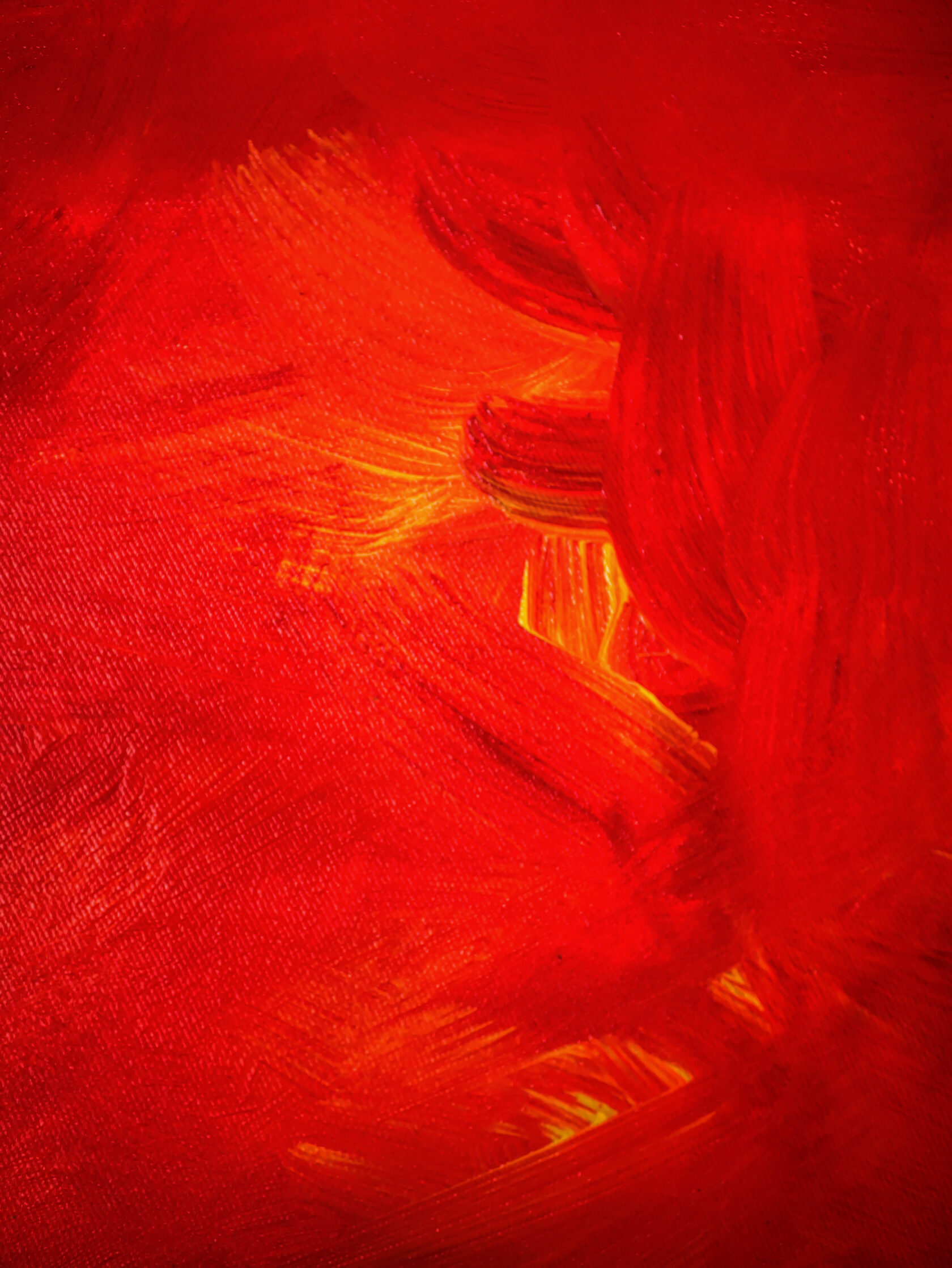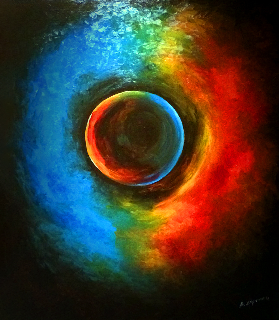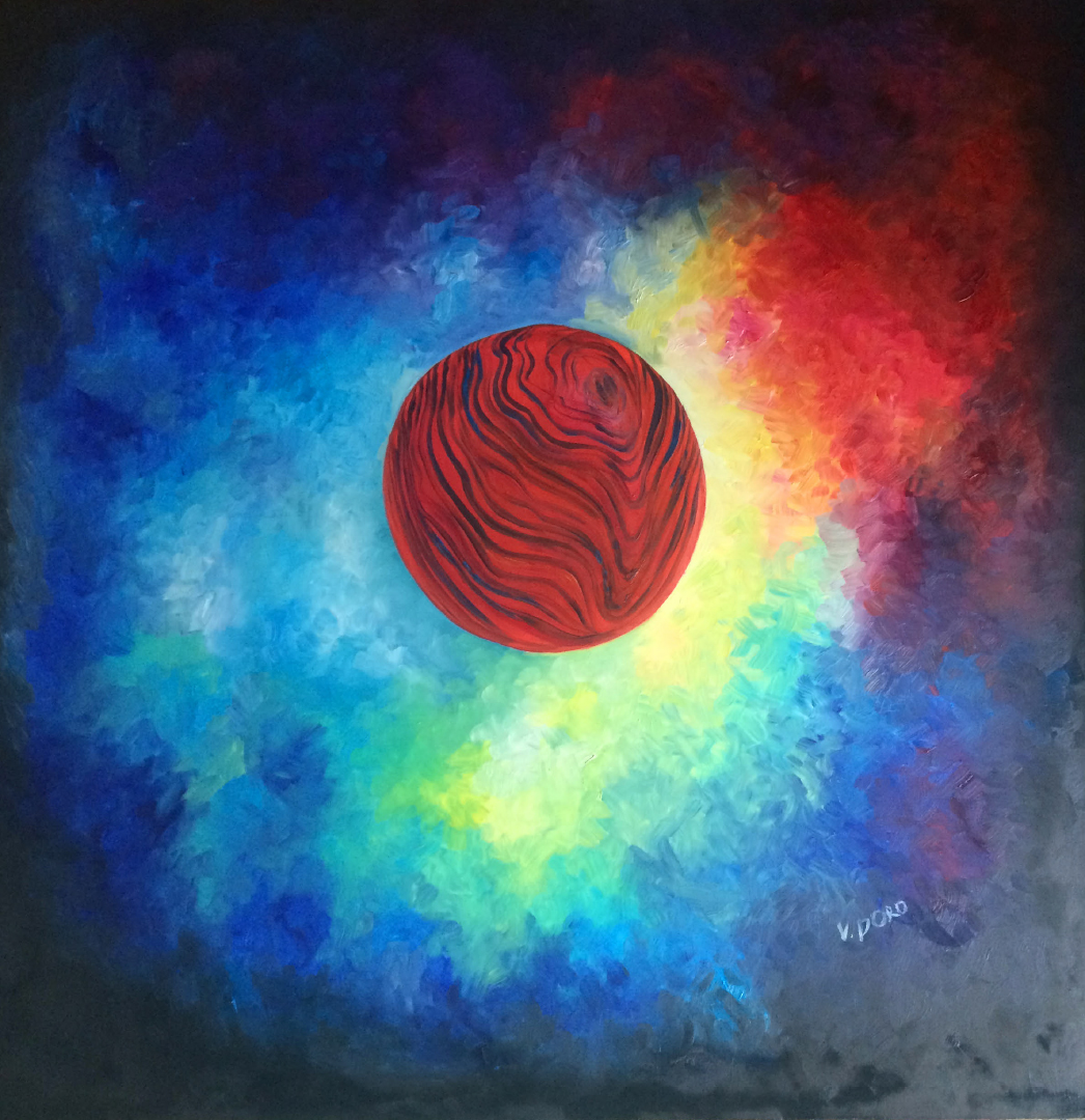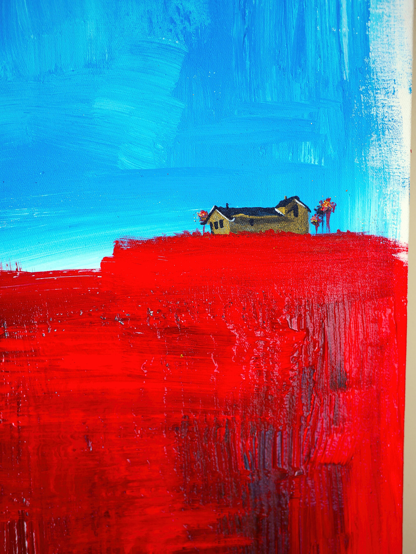 My work combines various natural colours, with the setting painted exclusively with strokes in different directions. I usually complete my work with only one tool.