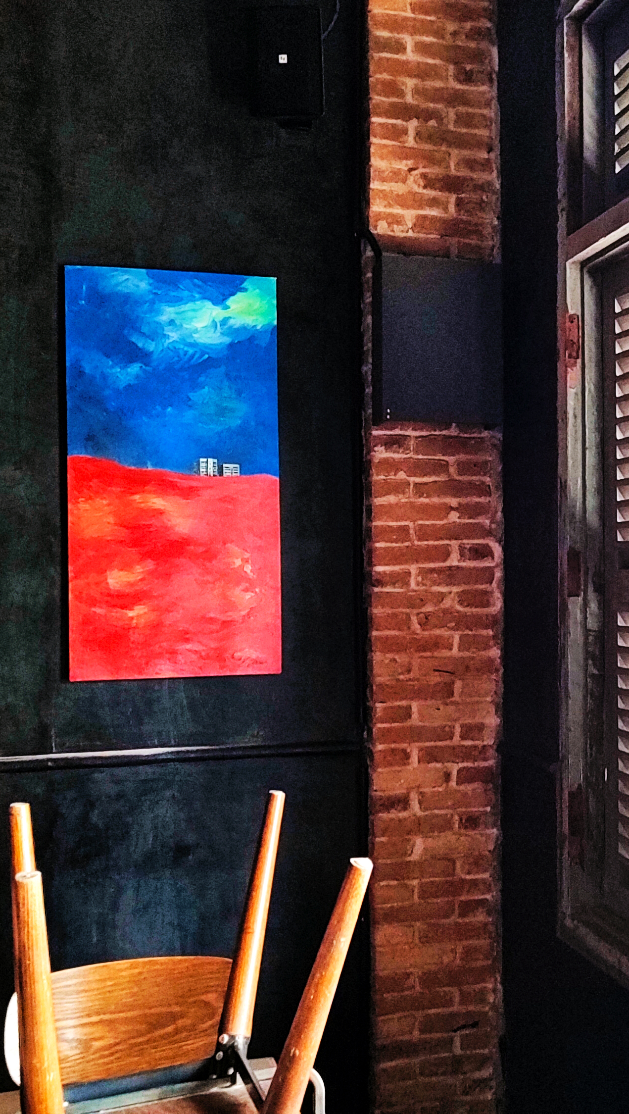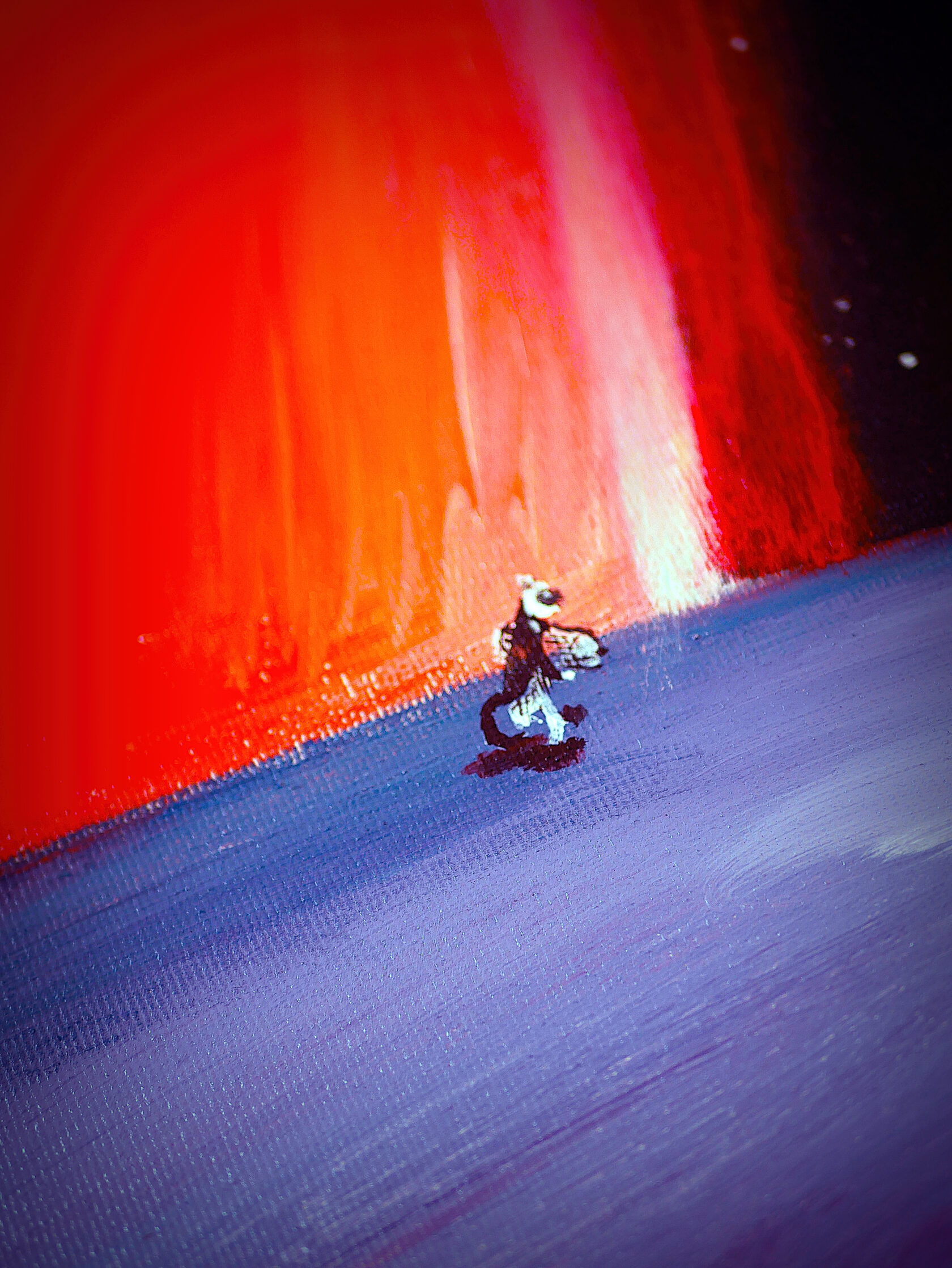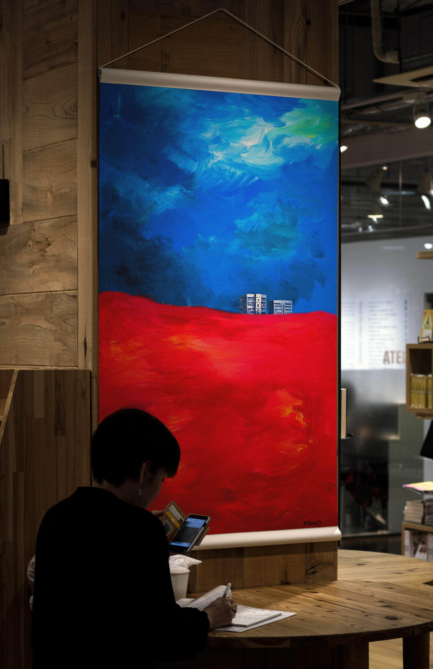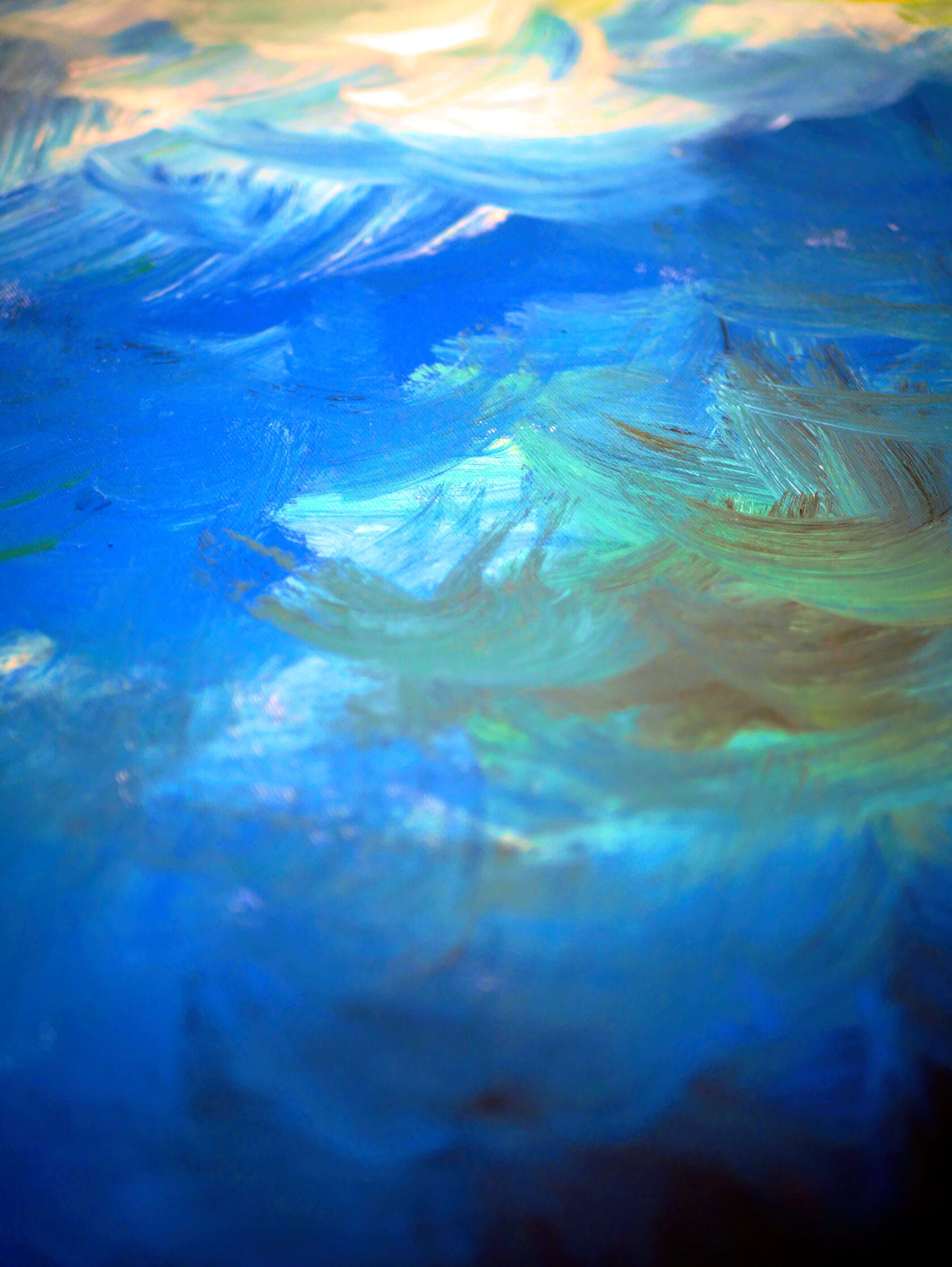 My work combines various natural colours, with the setting painted exclusively with strokes in different directions. I usually complete my work with only one tool.