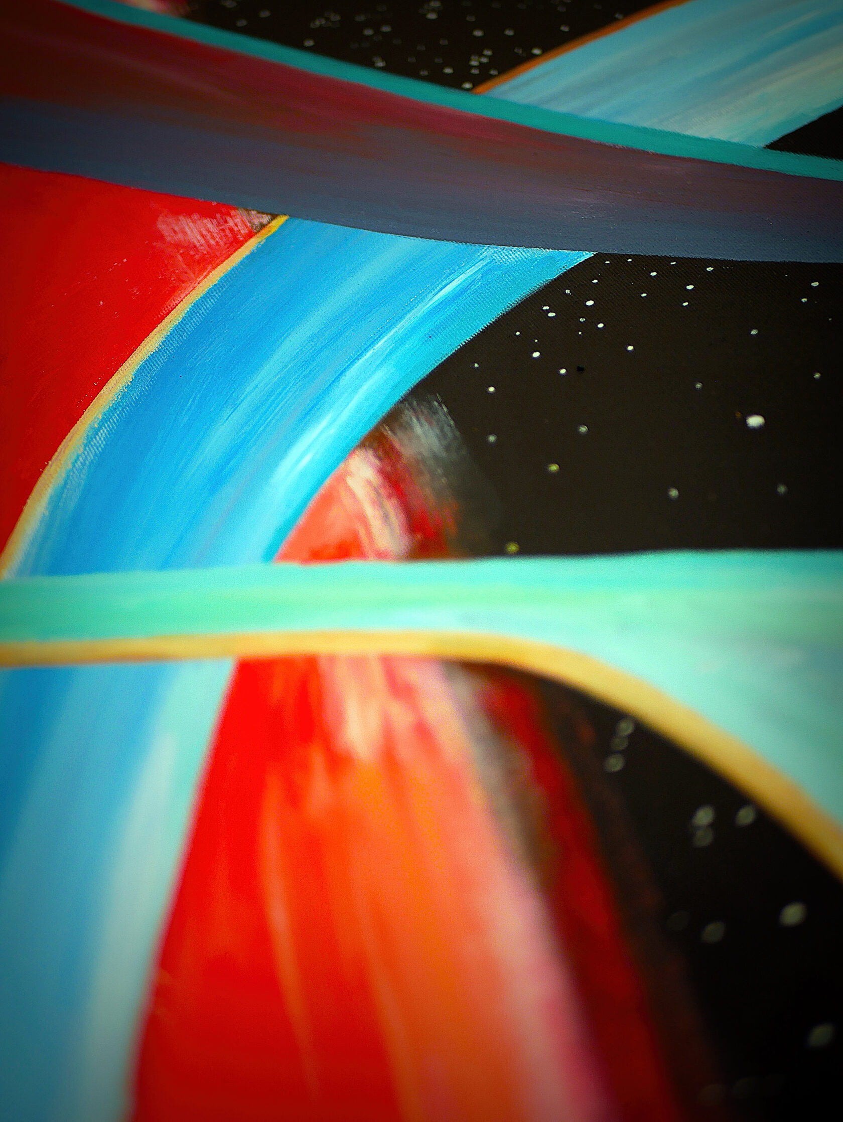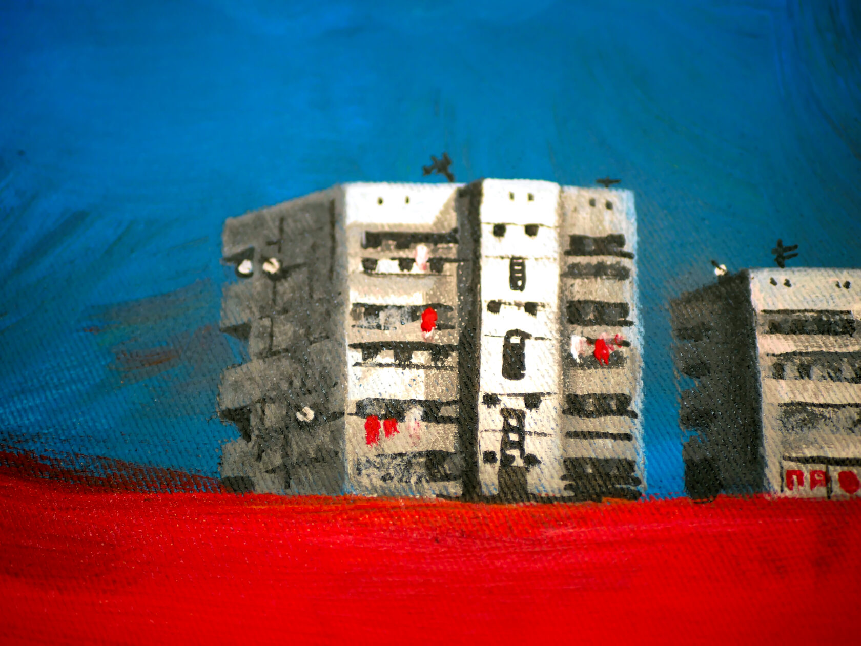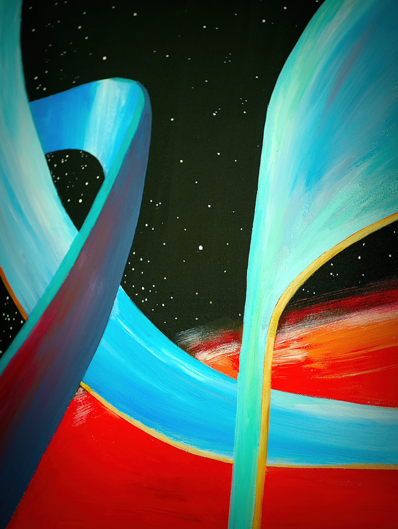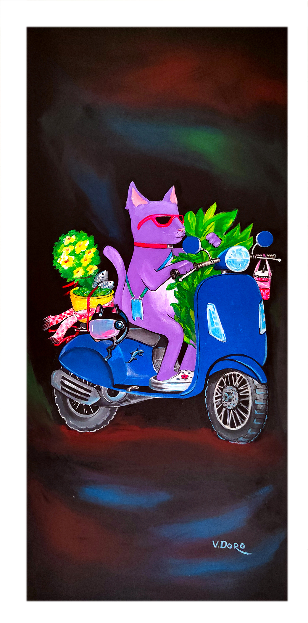 My work combines various natural colours, with the setting painted exclusively with strokes in different directions. I usually complete my work with only one tool.