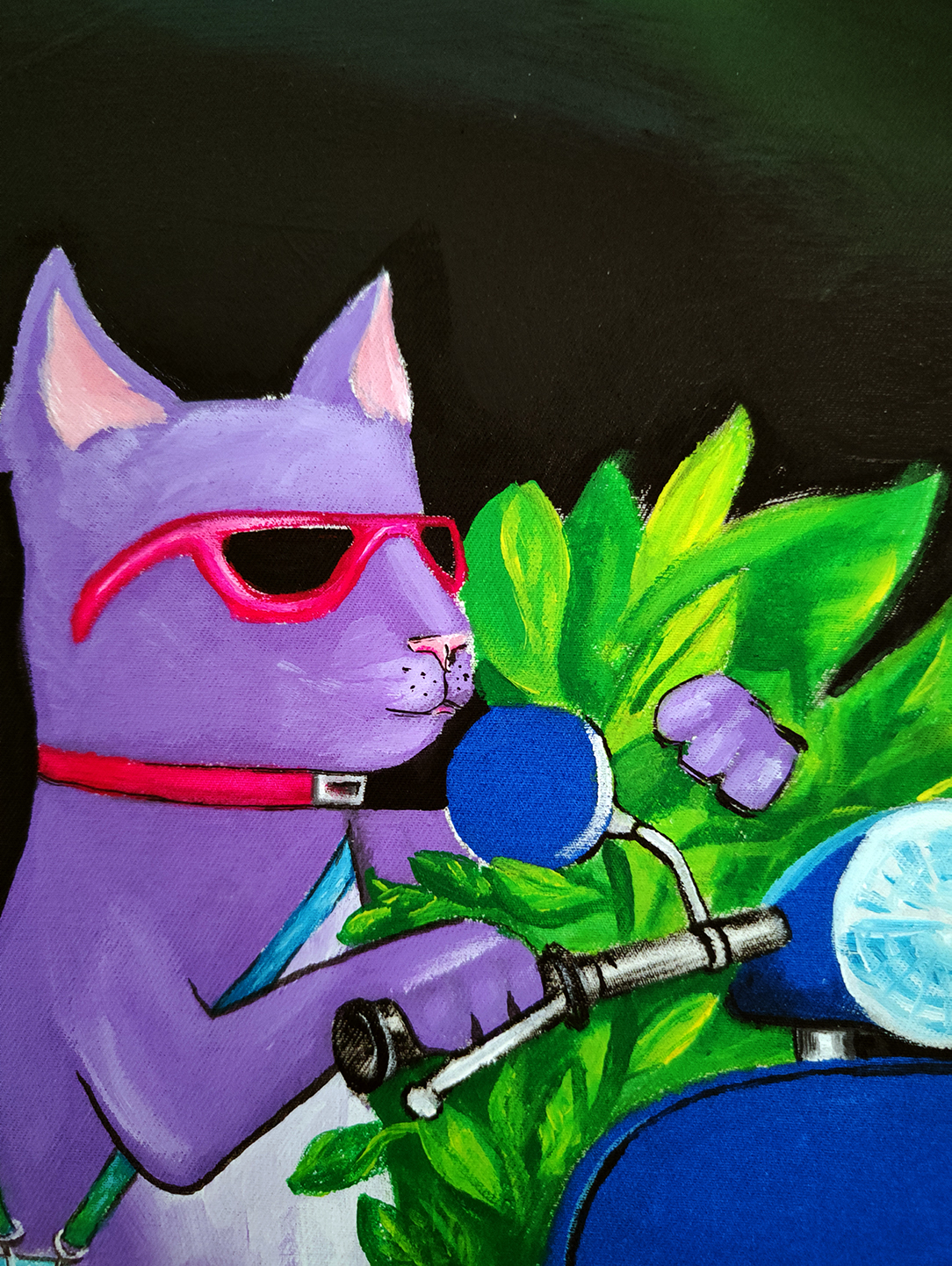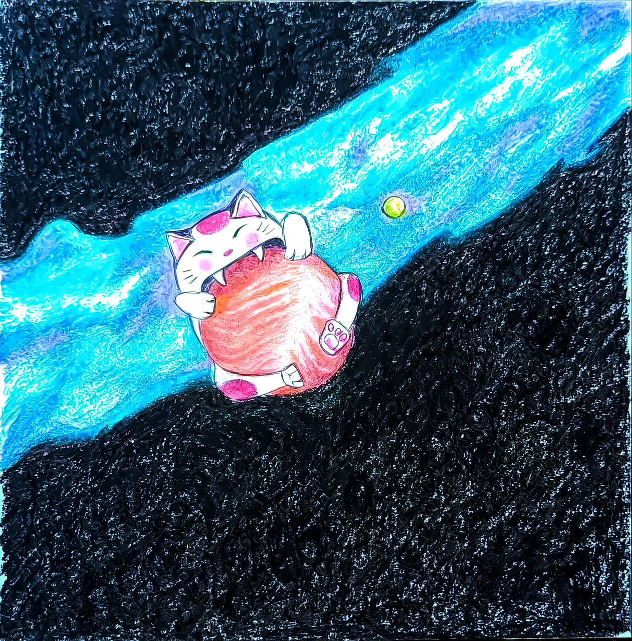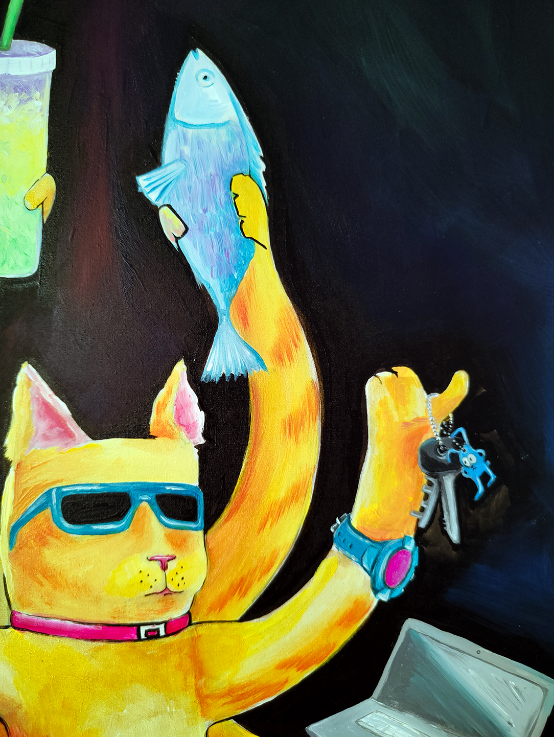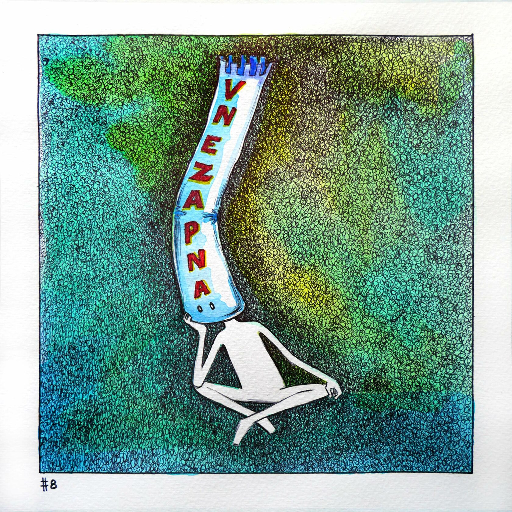 My work combines various natural colours, with the setting painted exclusively with strokes in different directions. I usually complete my work with only one tool.